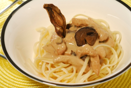 Cebola, creme de leite light, ervas frescas, farinha de trigo, funghi secchi, leite desnatado, Óleo de soja, peito de frango e Sal