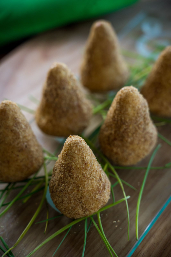 Alecrim, Alho, Alho Poro, Azeite Extra Virgem, Batata doce, caldo de legumes, Cebola, Cebolinha, Farinha de Arroz, linhaca dourada, louro, Manjericao, molho de tomate, oregano, Ovo, peito de frango, Polvilho Doce, Sal, Salsa, Tomate e tomilho