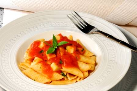 Alho, Azeite Extra Virgem, Cebola, Cenoura, Manjericao, Mussarela, oregano, Penne, Queijo Parmesão, Sal, Salsa e Tomate