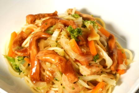 Alho, brocolis, Cebola, Cenoura, farinha de trigo enriquecida c/ ac folico e ferro, massa alimenticia grano duro, Molho Shoyo, peito de frango e Repolho Branco