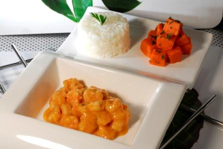 Abobora, Aipim, Alho, Arroz Branco, Azeite Extra Virgem, Camarão, Cebola, Coentro, leite de coco light, molho de tomate, Óleo de soja, Sal e Salsa