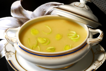 Alho, Alho Poro, Azeite Extra Virgem, Batata inglesa, brodo de frango, Cebola, Cenoura, Sal e Salsa