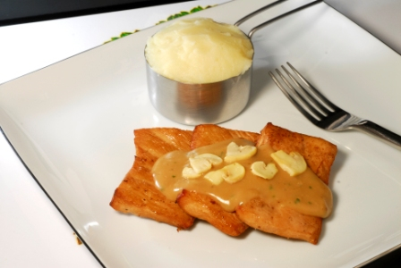Alho, Batata, Cebola, champignon, farinha de trigo, file de peito de frango, leite desnatado, Manteiga, Molho Shoyo, óleo de canola, Sal e Salsa