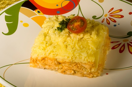 Escondidinho de peito de Frango com purê de batata inglesa