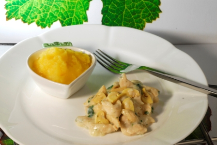 Alho, Batata baroa, Cebola, champignon, creme de leite light, farinha de trigo enriquecida c/ ac folico e ferro, file de peito de frango, Manteiga, molho ingles, Óleo de soja, Sal e Salsa
