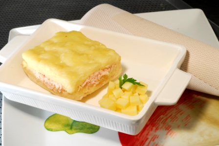 Batata inglesa, leite desnatado, Manteiga, mussarela light, Parmesao, peito de peru defumado light, Requeijao light e Sal