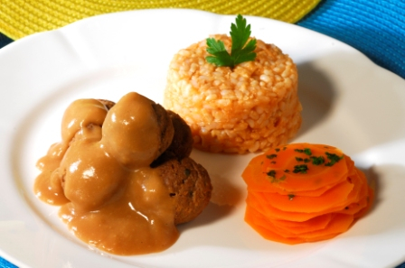 Alho, Arroz Integral, Azeite Extra Virgem, Cebola, Cenoura, cha, Farinha de Rosca, farinha de trigo enriquecida c/ ac folico, Manteiga, molho de tomate, molho ingles, óleo de canola, paprica doce, Sal, Salsa e Tomate