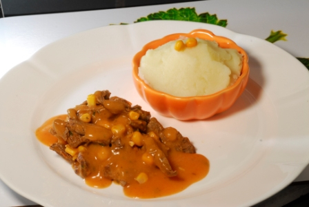 Alho, Batata, Cebola, Cebolinha, farinha de trigo, File Mignon, folhas de louro, leite desnatado, Manteiga, Milho verde, molho de tomate, molho ingles, óleo de canola, Sal e Salsa