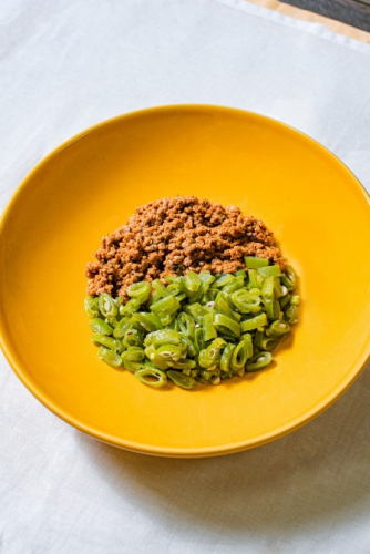 Alho, Azeite Extra Virgem, Cebola, cha, oregano, Sal, Salsa, Tomate e Vagem Manteiga