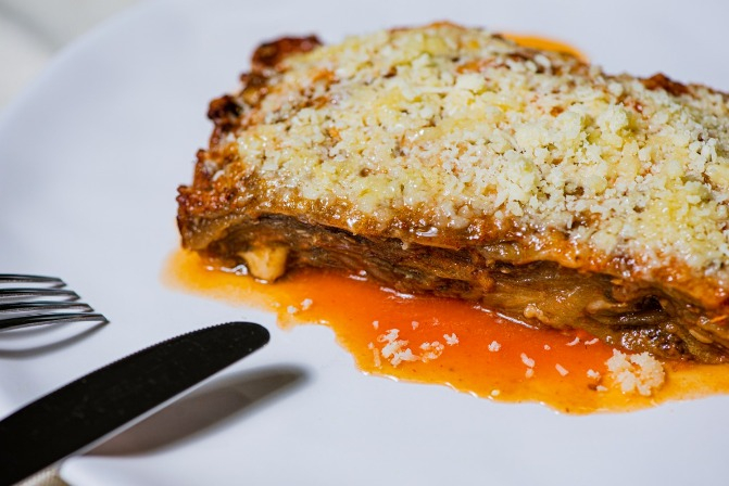 Alho, Azeite Extra Virgem, Berinjela, Cebola, Manjericao, Mussarela, oregano, Queijo Parmesão, Sal, Salsa e Tomate