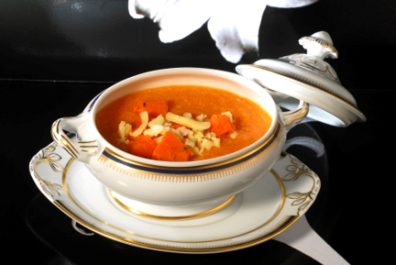 Abobora, brodo de frango, Cebola, Mussarela, Óleo de soja, Queijo Parmesão e Sal